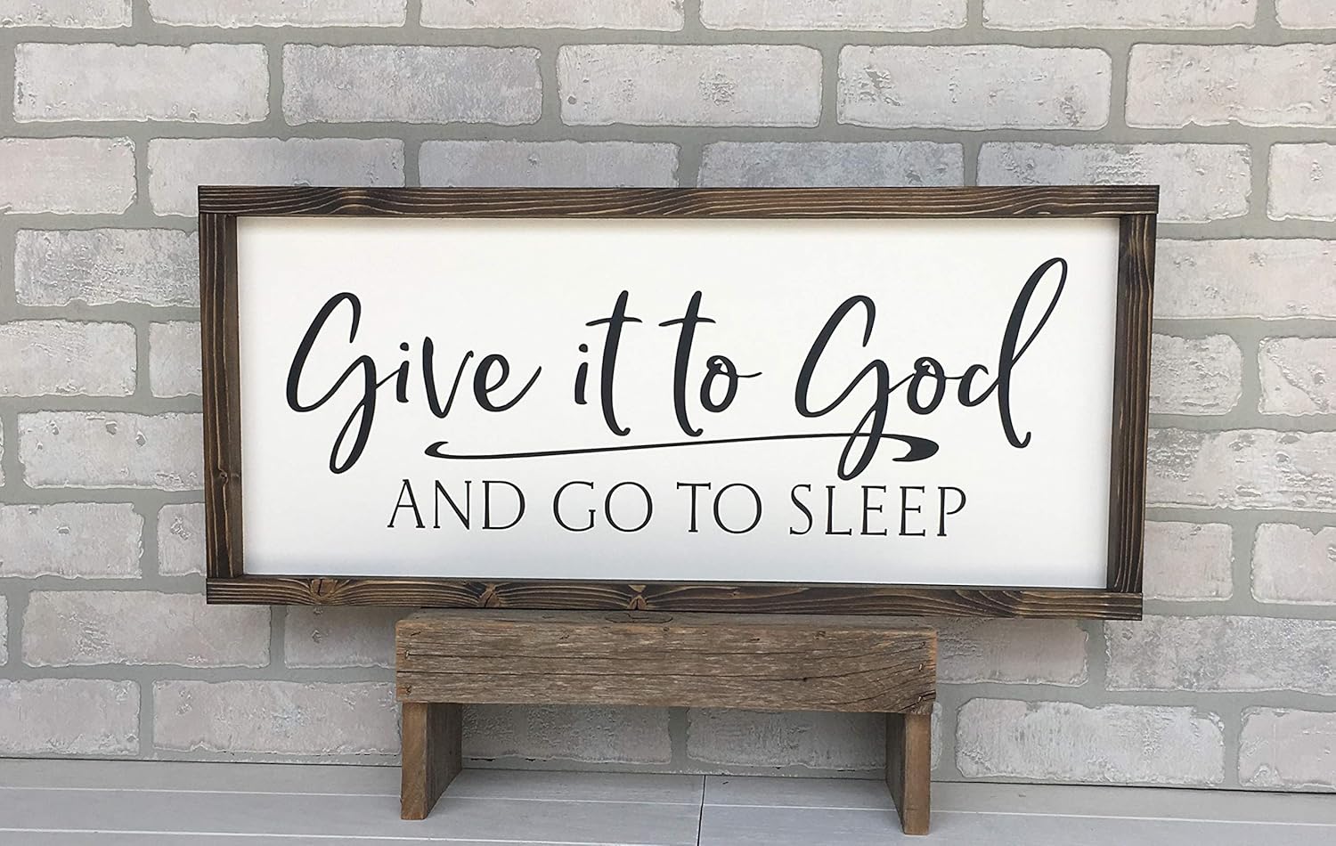 Give It To God And Go To Sleep Wood Framed Sign Wall Sign Mulberry Market Designs from cdn.shopify.com 💗 this sign pictured measure approximently 12x46. Any room, especially a bedroom will be perfect to hang this lovely sign. This would also work great as a gift! Give it to god and go to sleep sign. Give it to god and go to sleep. It's a great reminder that god is in control! Put your heart at ease at the end of the day with the encouraging sentiment of this sweet wall sign. 4.5 out of 5 stars.